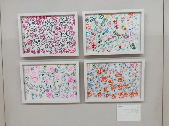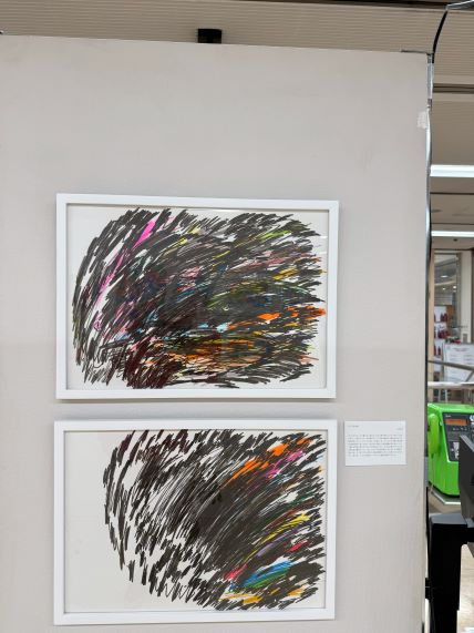 他の福祉施設の方々の個性豊かな作品も展示されていたので、沢山の方にご覧いただきました。それぞれ楽しそうに描いて取り組まれるご様子が浮かんでくるような作品です。